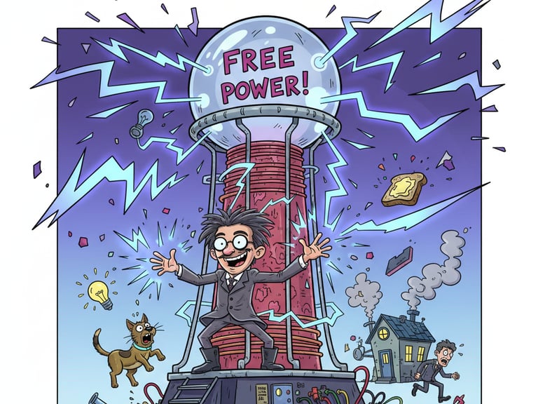 Se Tesla prometia que suas bobinas poderiam transmitir energia sem fio para todo o planeta, por que ainda dependemos de postes, fios de cobre e tomadas? O que aconteceu com o sonho da energia livre e gratuita após 1943?